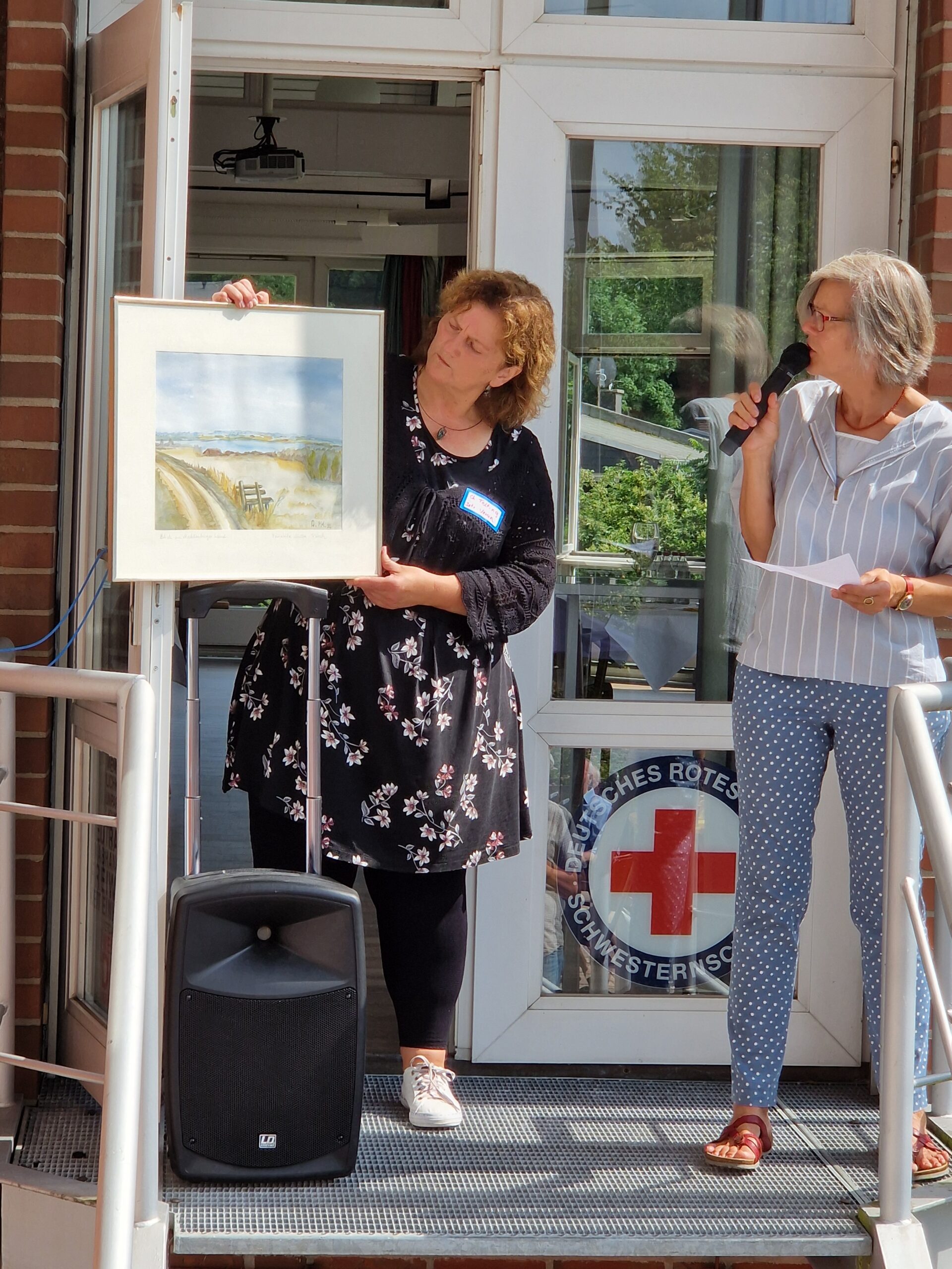 Bei schönem Wetter mit Ausblick auf die Wakenitz fand das Sommercafé des Vereins statt. Über 60 Besucher erfreuten sich mit sichtlich guter Laune an netter Gesellschaft, leckerer Verpflegung, der schönen Umgebung und dem unterhaltsamen Programm. Aus Anlass des Festes gab der Verein eine bunte Sammlung gespendeter Bilder gegen eine Spende ab. Die sehr unterschiedlichen „Kunstwerke“ fanden fast alle neuen Besitzer. Für gute Stimmung sorgte auch die Musik von „Mr. Bluewaterman“, der alte englische Gedichte vertont hatte und diese vortrug. Ein rundum gelungener Nachmittag für die Mitglieder und Freunde des Vereins.